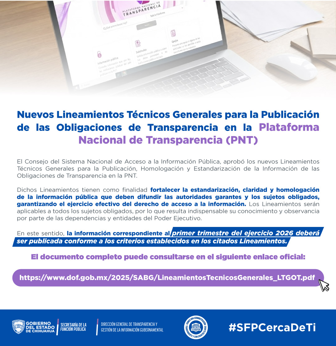 En este contexto, se informa que la información correspondiente al primer trimestre del ejercicio 2026 deberá ser publicada conforme a los criterios establecidos en los citados Lineamientos Técnicos Generales, a través de la Plataforma Nacional de Transparencia.