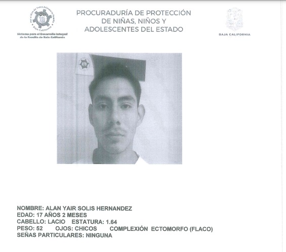 El nombre del menor es Alán Yair Solís Hernández, de 17 años de edad, quien es originario del estado de Chihuahua y se encuentra resguardado en un albergue temporal ubicado en Tijuana.