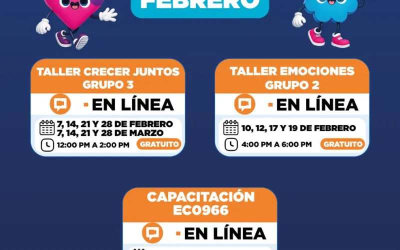 Como parte del calendario, se contará con tres grupos del Taller de Emociones, así como la capacitación “Crecer Juntos”, ambas impartidas con el apoyo de Fundación Carlos Slim, enfocadas en el fortalecimiento de habilidades socioemocionales.