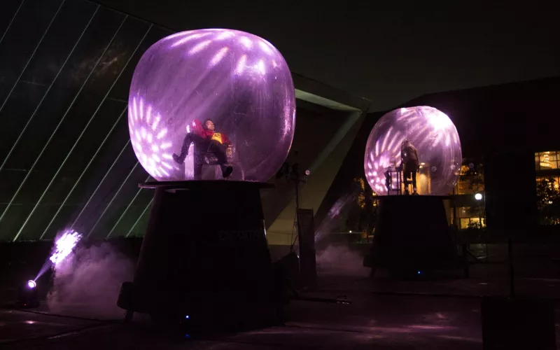 En la Plaza de Armas se presenta la propuesta “Burbujas Urbanas”, bajo la dirección de talento chihuahuense, con la presentación de los actores Luis Bizarro y Perla de la Rosa; la puesta consta de cuatro monólogos presentados “en serie” dentro de dos burbujas gigantes. Se trata de un formato de teatro para calle.