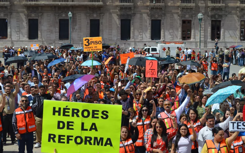 En punto de las 11:00 horas se activó el protocolo de evacuación en edificios públicos por las brigadas internas de Protección Civil constituidas para ese fin.