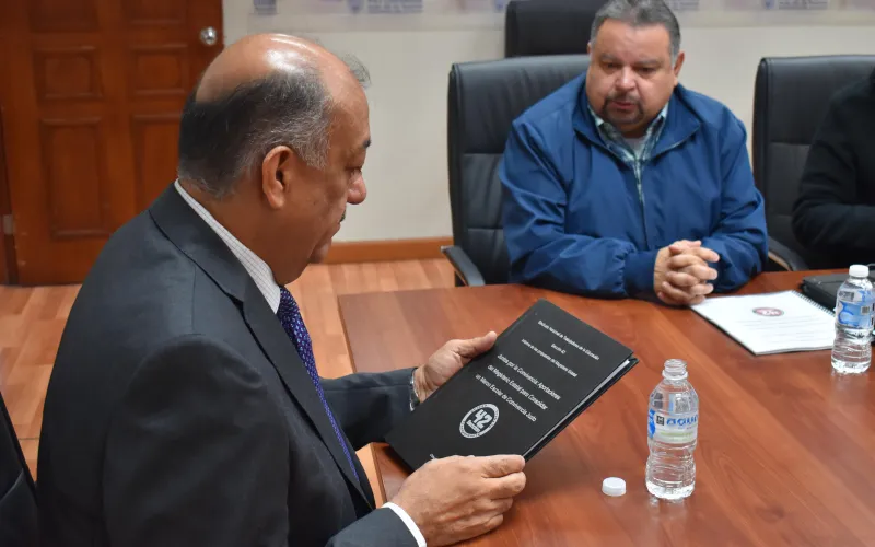El secretario de Educación y Deporte, Francisco Hugo Gutiérrez Dávila, recibió de manos de una comitiva representativa de la Sección 42 del Sindicato Nacional de Trabajadores de la Educación (SNTE), el informe de las propuestas del Magisterio Estatal para fortalecer el Marco de Convivencia Escolar.