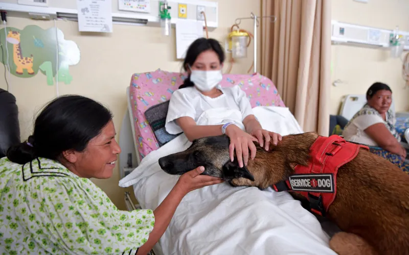 Estas acciones se complementaron con terapias de juego, musicoterapia semanal en el área de preescolares y más de 500 atenciones de terapia asistida con caninos.