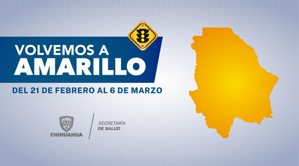 Tras recibir los indicadores de la Secretaría de Salud Federal que miden el riesgo epidemiológico en las entidades, se informa que el estado de Chihuahua transitará a semáforo amarillo, mismo que tendrá una vigencia del lunes 21 de febrero al domingo 6 de marzo.