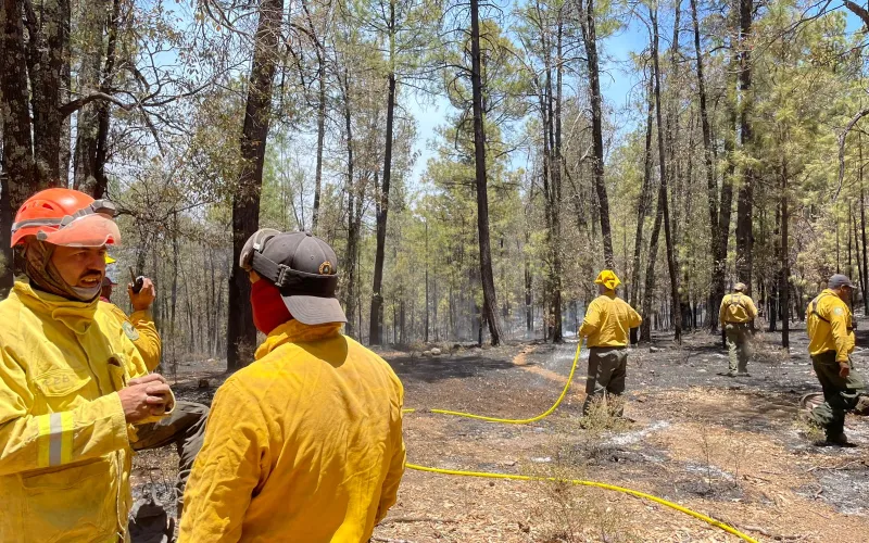 Como parte de las labores de colaboración institucional, se coordinó además el traslado de un colapsable proporcionado por la Comisión Nacional Forestal (Conafor), el cual será utilizado para abastecer de agua al helicóptero destinado para la atención de los siniestros.