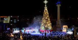 - Al girar la “llave mágica” con la que encendió el tradicional Árbol de Navidad en la Plaza del...