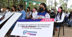 También se hizo entrega de becas universitarias para inscripción, titulación, materiales, equipo...