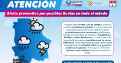 - Protección Civil mantiene alerta preventiva y exhorta a la población a tomar medidas preventivas...