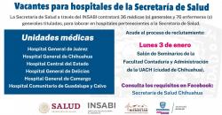 Se ocupará a 36 doctores (as) y 76 enfermeras (os) para nosocomios de Juárez, Chihuahua, Delicias,...