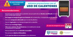 La dependencia estatal informa sobre los riesgo de utilizar hornillos, braceros, etc. que quemen...