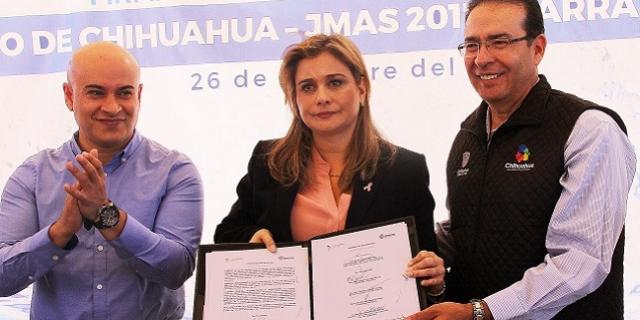 En la firma del convenio participó la presidenta municipal de Chihuahua, María Eugenia Campos Galván y estuvo presente el diputado Miguel Latorre.