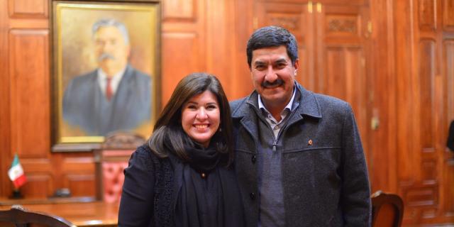 El gobernador Javier Corral Jurado recibió hoy en su despacho a la nueva delegada de la Secretaría de Desarrollo Agrario, Territorial y Urbano (Sedatu), Lucía Chavira.