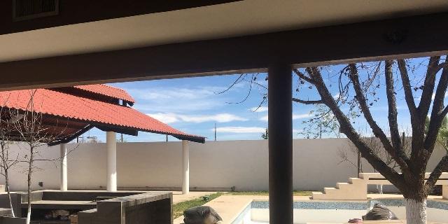 De dimensiones aproximadas 50×50 metros (2,500 metros cuadrados aproximadamente), cuenta una edificación de una sola planta de 150 metros cuadrados de construcción; tiene recibidor o estancia, cuarto de dormir, centro de entretenimiento y baño completo; corrales para aves, alberca de 6×12 metros, asador, palapa, baño exterior (sin regaderas), pila de agua para riego de árboles frutales y bodegas.