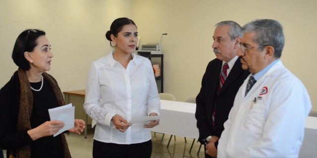 Previo a la entrega de los medicamentos, la presidenta del DIF Estatal, Cinthia Chavira, la titular del ICHMUJER, Emma Saldaña, el Director de los Servicios Estatales de Salud, Dr. Pedro Ramírez Godínez, acompañaron a los directivos del nosocomio durante un recorrido por las instalaciones del Hospital Infantil de Especialidades, para observar su operación.