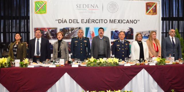 “Sé que su tarea no es nada fácil, que está llena de sacrificios y día a día se enfrentan a innumerables peligros, pero también sé, que no hay honor más grande que servir a la patria y que son ejemplo de servicio desinteresado, y que constantemente nos dan lecciones de orgullo y dignidad, que nos comprometen a trabajar en la construcción de un México más seguro”, externó el Gobernador al hacer un llamado a las fuerzas armadas para actuar siempre con respeto irrestricto de los derechos humanos “porque ello contribuirá a exaltar los valores de la institución que representan, en apego al estado de derecho de contribuir a la aspiración de alcanzar un país de paz, justicia y armonía, haciendo honor a la confianza y a la misión que el pueblo y el gobierno les ha encomendado”.