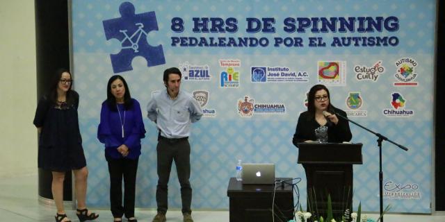 Paola Trujillo Oaxaca, por la asociación civil “Iluminemos de Azul por el Autismo”, dijo que esta conferencia es parte de las actividades de la “Campaña de Concientización y Sensibilización en torno del Autismo”, en donde además de conferencias resalta la  actividad de “8 Horas de Spinning Pedaleando por el Autismo”, que se realizará el 2 de Abril desde la Plaza Mayor, con participación de 50 bicicletas, a la que se invita a la sociedad chihuahuense