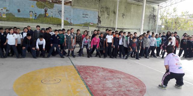 Este miércoles el alumnado de la Escuela Benito Juárez recibió al personal del ICHD siendo atendidos 180 alumnos, los cuales comenzaron con una sesión correspondiente a estiramientos, movimientos de calentamiento y una rutina que permitió a los participantes llenarse de energía.