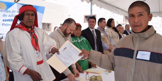 En el evento al interior del penal, se entregaron 15 constancias de alfabetización indígena, 14 de alfabetización en español y 30 constancias a quienes ya dominan la lecto-escritura y las matemáticas básicas, además de 7 certificados de primaria y secundaria a los jóvenes y adultos que permanecen dentro del centro penitenciario.
