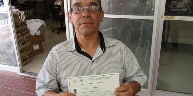 Encontró un empleo y una oportunidad de mejorar en un supermercado, en el área de atención a clientes, sin embargo, para contratarlo era necesario contar con sus estudios de primaria y secundaria, así que buscó información en el ICHEA y presentó examen en el Programa Especial de Certificación (PEC) y logró acreditar la primaria en un día por sus conocimientos de la vida y sus haberes, al obtener su certificado con un promedio de 8.7.