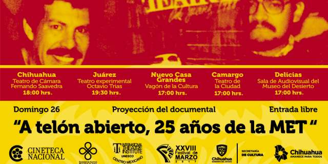 Además de las obras, se realizará la presentación del documental sobre la historia del teatro en el estado “A telón abierto, 25 años de la MET”, con funciones programadas el día 26 de marzo en las cinetecas de los municipios de Chihuahua, Juárez, Nuevo Casas Grandes, Camargo y Delicias.