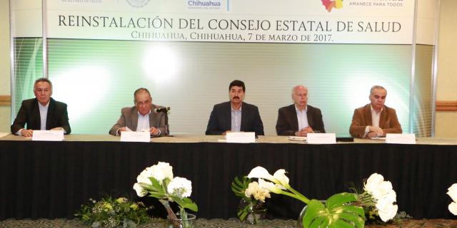 El gobernador, Javier Corral y el secretario de Salud, José Narro encabezaron la Reinstalación del Consejo Estatal de Salud, organismo que tiene como objetivos coadyuvar con la Secretaría de Salud federal, para integrar programas interinstitucionales, conjuntar esfuerzos, intercambiar información, consulta y asesoría en beneficio de la salud de los chihuahuenses.