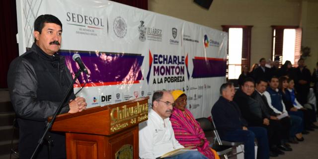 “Queremos regresarle a Juárez lo que por justicia le corresponde y así lo haremos con muchos programas” “Hemos decidido que se arranque el programa “Echarle Montón a la Pobreza”, donde autoridades de los tres niveles de gobierno realizarán un programa de atención integral, de atención a los más pobres de nuestro estado”.