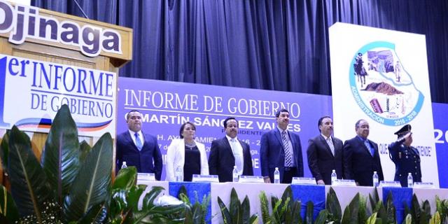 El gobernador Javier Corral Jurado asistió al Primer Informe de Trabajo del presidente municipal de Ojinaga, Martín Sánchez Valles, en donde destacó que aun con la dificultad económica que presenta el Gobierno del Estado, en 2017 se destinó a este municipio una inversión cercana a los 22 millones de pesos.