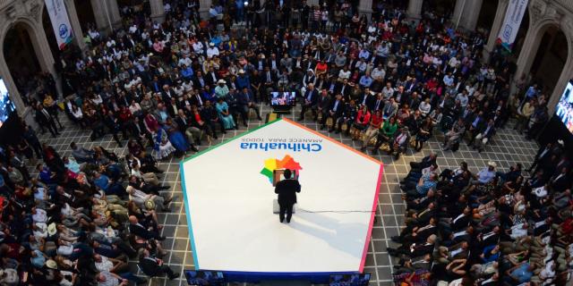 Buenas tardes a todas y todos. Gracias por estar aquí quiero saludar en primerísimo lugar a las y los diputados al Congreso de Chihuahua que nos acompañan esta tarde, a las y los presidentes municipales de todo el estado que nos acompañan, a los delegados federales en nuestro estado, funcionarios municipales, estatales y federales, empresarios, a nuestros rectores de universidades, directores de institutos tecnológicos.