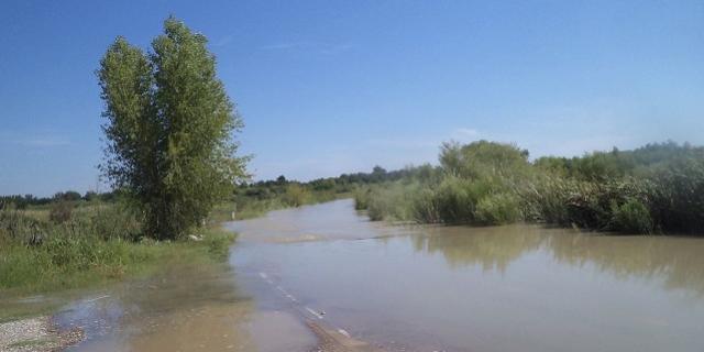 El agua excedente de la presa La Boquilla anegó completamente el vado y ante ese hecho, se procedió al cierre del camino a la circulación vehicular y de personas.