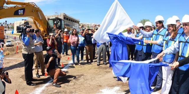 El gobernador Javier Corral y la alcaldesa María Eugenia Campos, colocaron la primera piedra del puente que se construirá sobre el cruce del Periférico de la Juventud y Avenida La Cantera, para agilizar el tránsito vehicular en el sentido oriente-poniente, obra en la cual estado y municipio invertirán de forma bipartita 90 millones de pesos.