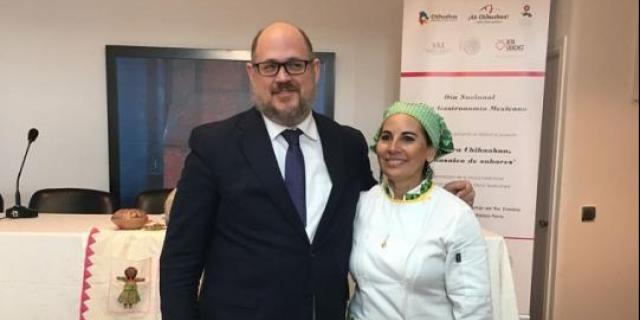 Esta es una muestra de la extensa cocina, basada en la famosa ganadería chihuahuense, piscicultura, huertos de manzana, durazno y nogal, así como de los destilados como el Sotol y el Mezcal, elaborados por las expertas manos de Enedina Rivas, cocinera tradicional, y Catalina Batista, artesana rarámuri, quienes formaron parte de la comitiva chihuahuense que viajó a España, acompañadas también por la presidenta de la Asociación de Empresarias Capítulo Chihuahua, Patricia Hernández.