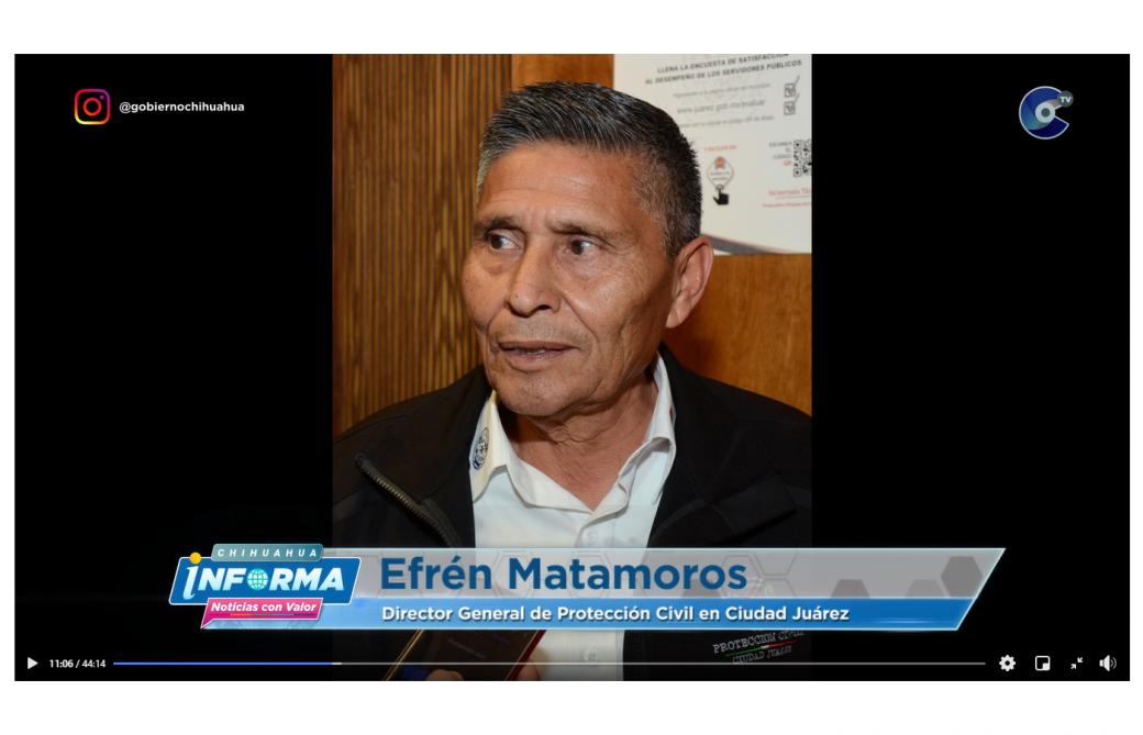Efrén Matamoros, director de Protección Civil de Ciudad Juárez, durante su participación en la conferencia de prensa virtual, dijo que la intensa nevada que afectó este domingo y lunes al municipio juarense ha provocado dificultades para apagar incendios.