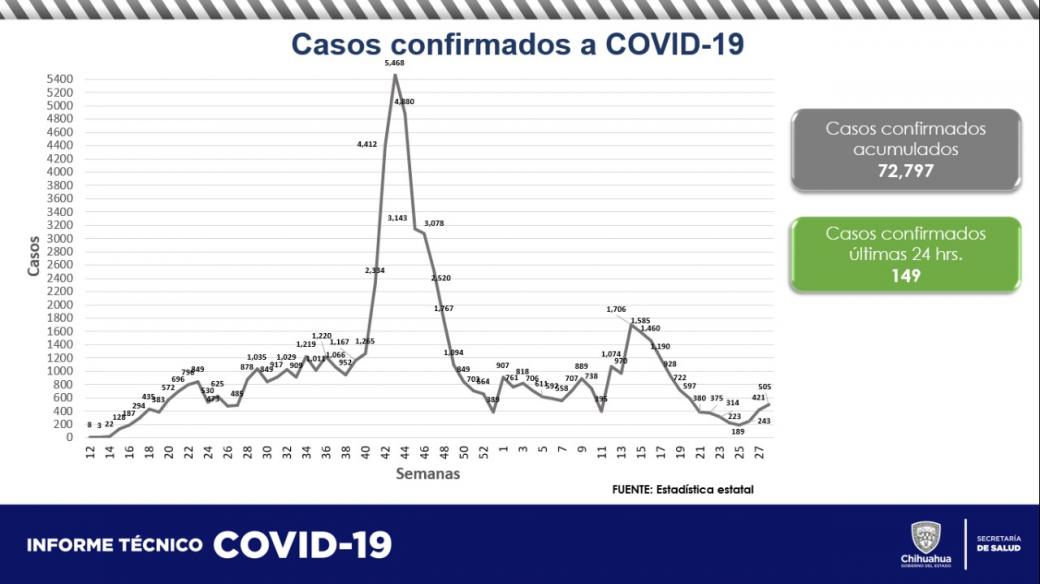 Con relación al número de personas fallecidas, la Secretaría de Salud indicó que se confirmaron 8 casos más, que corresponden a 6 pacientes que vivían en Ciudad Juárez, 1 en Cuauhtémoc y 1 en Ascensión, para un total de 7 mil 691.