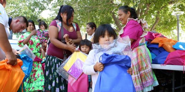 En el marco de la celebración del Día Internacional de los Pueblos Indígenas, que se conmemora el próximo 9 de agosto, se llevó a cabo la entrega de más de 900 paquetes de útiles escolares y mochilas a niños y niñas de las diferentes comunidades que cursan el nivel Básico en Ciudad Juárez, a través de la campaña “Lápiz, Papel y Tijeras”.