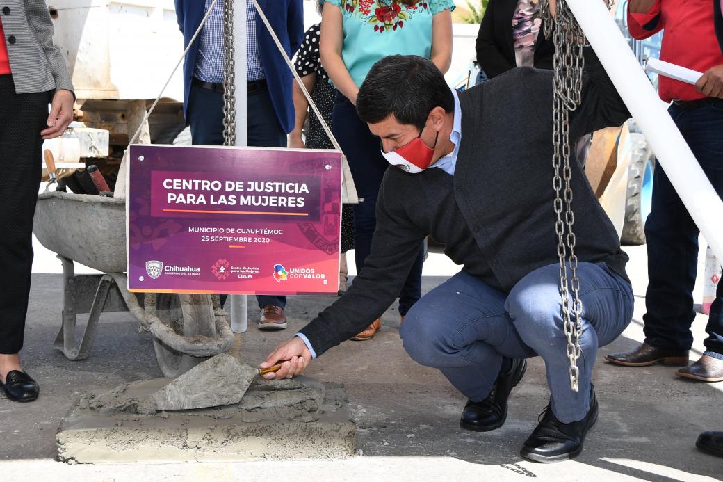En gira por ciudad Cuauhtémoc, el gobernador Javier Corral colocó la primera piedra del Centro de Justicia para las Mujeres (Cejum), que se edificará con una inversión total de 34 millones de pesos para procurar justicia, protección y acompañamiento a mujeres, adolescentes y niñas en situación de violencia en 20 municipios.