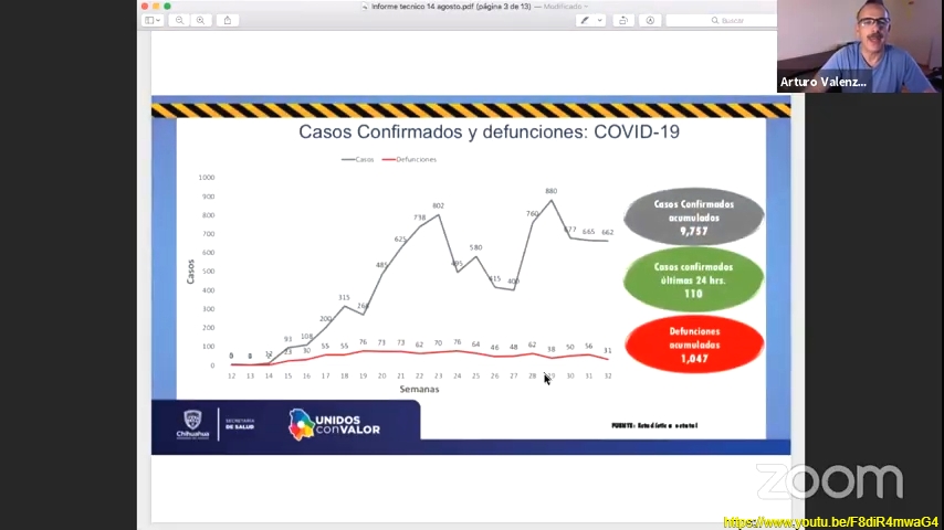 De la semana 30 a la 32 se detecta una meseta pero aún es muy pronto para considerar que casos irán a la baja, por lo que la ciudadanía debe seguir haciendo su parte para detener los contagios: Dr. Arturo Valenzuela