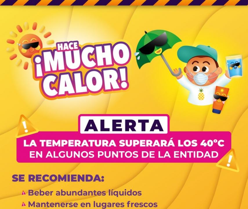 La Coordinación Estatal de Protección Civil emitió un aviso preventivo por temperaturas que oscilarán entre los 33 hasta los 43 grados centígrados en las diversas regiones durante para los próximos días, incluido el fin de semana.