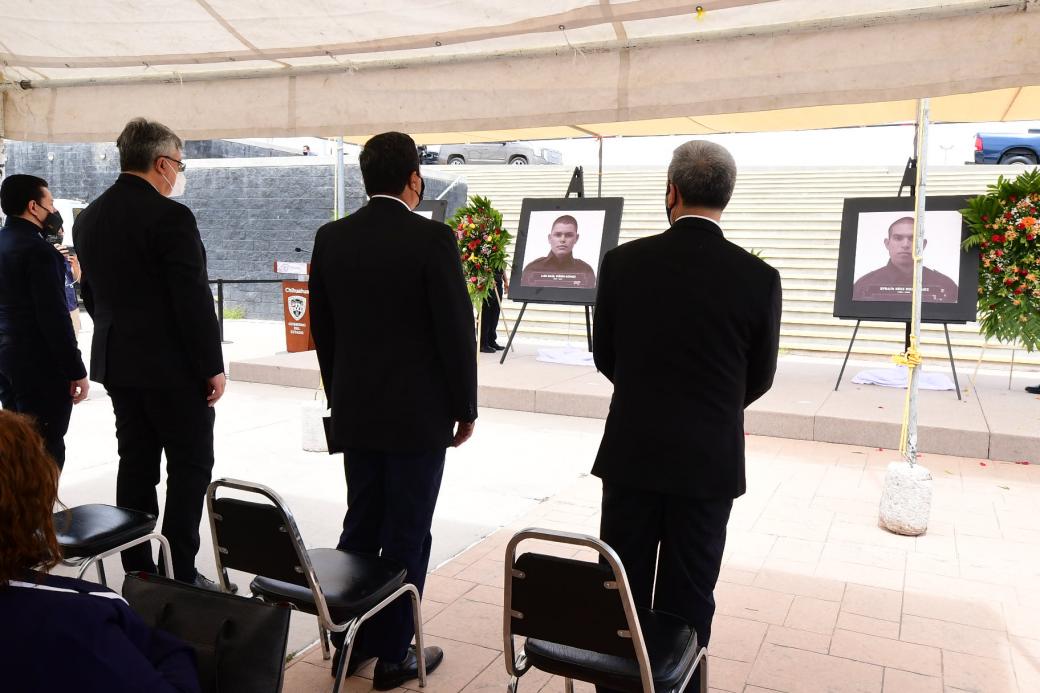 En las instalaciones del C-4, el gobernador Javier Corral Jurado, encabezó el homenaje póstumo en memoria de los oficiales caídos en cumplimiento de su deber, durante una emboscada a manos de criminales cuando patrullaban en el municipio de Madera.