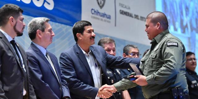 “Hoy no sólo quiero felicitar a los 317 elementos que merecidamente reconocemos, también me gustaría agradecerles su tesón y entereza; son ustedes un orgullo para nuestra entidad y estoy seguro de que no hay mayor orgullo para ustedes, que el servir con dignidad y honradez al pueblo de Chihuahua”, indicó.