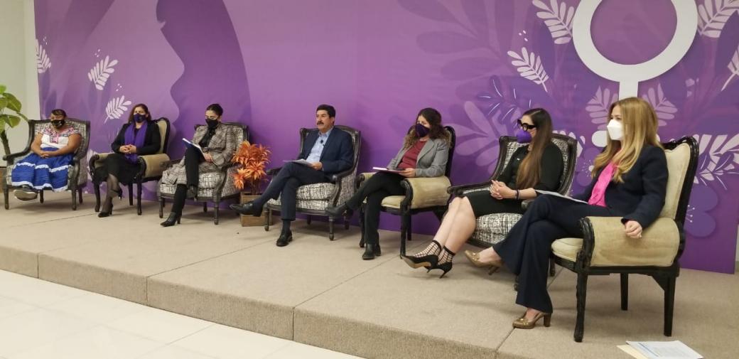 En el conversatorio participaron Wendy Paola Chávez Villanueva, titular de la Fiscalía Especializada de la Mujer (FEM); Alejandra de la Vega Arizpe, ex secretaria de Innovación y Desarrollo Económico y actual representante del gobernador en Ciudad Juárez; y María García Guzmán, representante de las mujeres en la comunidad mixteca.