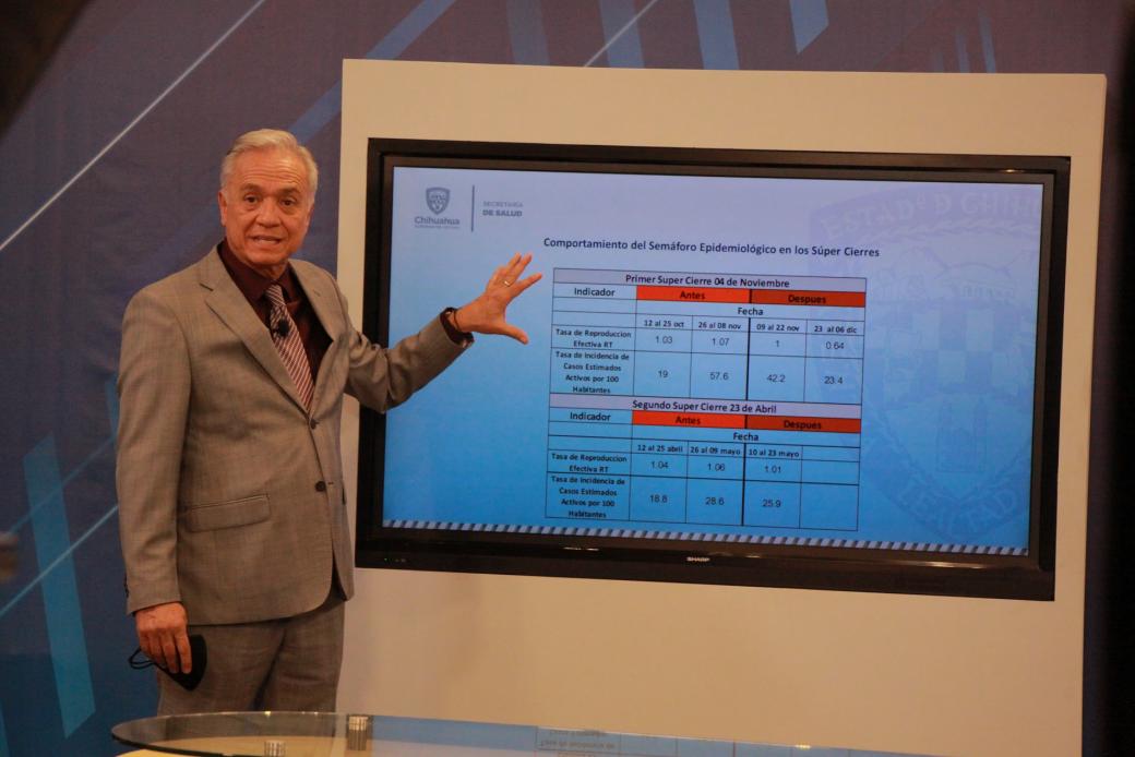 En un mensaje emitido este viernes a través de las redes sociodigitales del Gobierno del Estado, el titular de Salud explicó que los dos “súper cierres” permitieron contener la tasa de transmisión del virus, así como la tasa de contagios, situación que impactó de forma positiva en la puntuación del semáforo que regula las actividades económicas en el estado de Chihuahua.