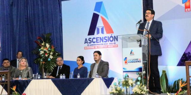 Al asistir al Primer Informe de Gobierno de la alcaldesa Laura Bernarda Romero García, el gobernador Javier Corral Jurado, informó que el Plan de Inversión 2019-2021 contempla obras de impacto social por 24.4 millones de pesos para el municipio de Ascensión.