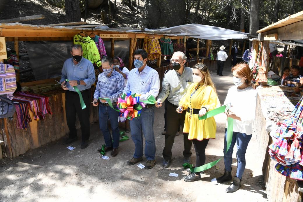 Como parte del Maratón de Obras que continúa por todo el estado, el gobernador Javier Corral entregó el Corredor Comercial Cusárare, en el municipio de Guachochi, donde se apoyó a familias ralámuli con puestos de venta fijos, construidos con madera.