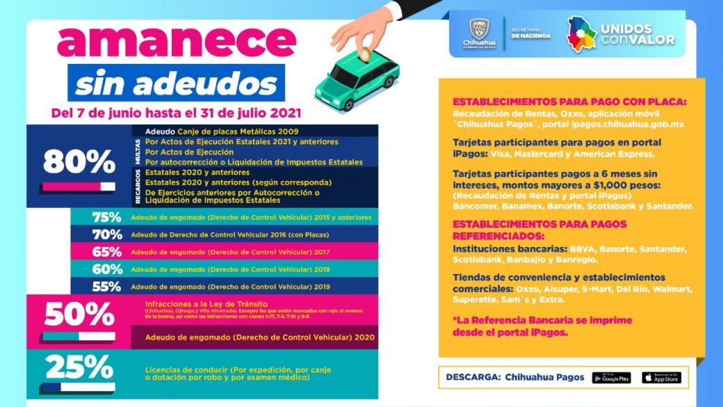 La dependencia informó que el objetivo es incrementar los ingresos mediante beneficios fiscales de condonación a las y los contribuyentes del estado de Chihuahua.