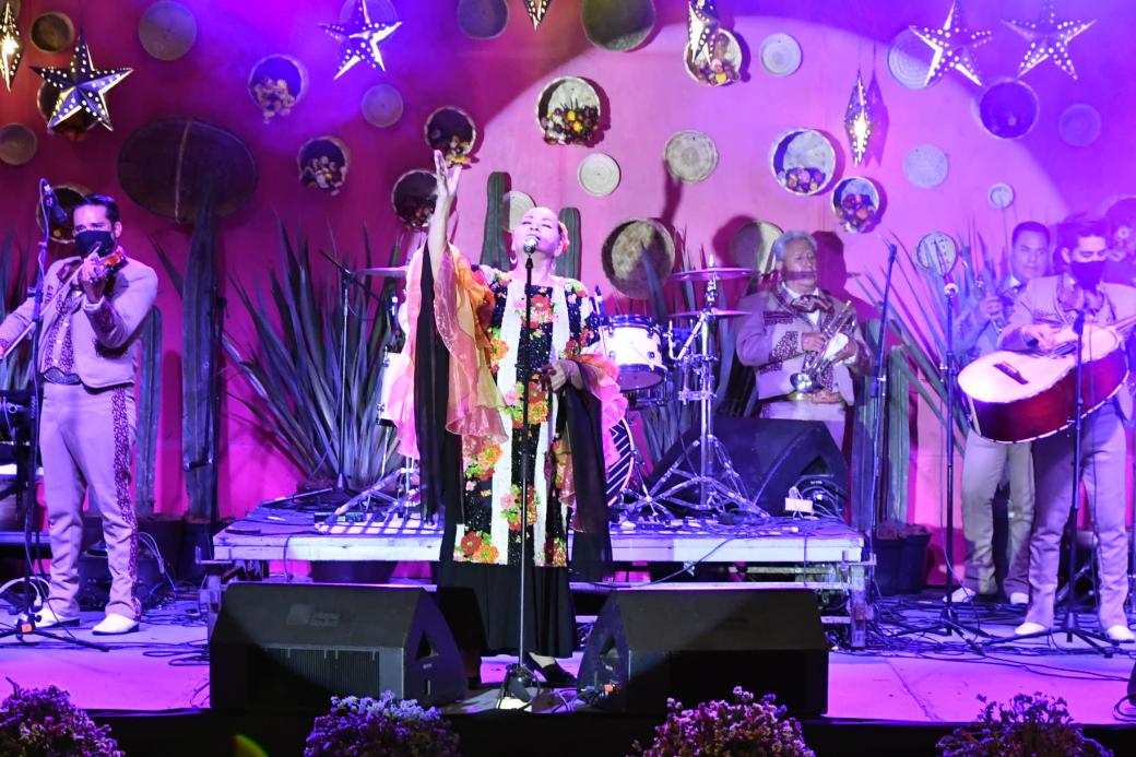 Tras una breve entrevista de Leonel Rodríguez, quien conduce la programación de esta noche de fiesta, Mariana Rosales, acompañada por el Mariachi Imperial 2000, inició la fiesta con la canción Cucurrucucú Paloma.