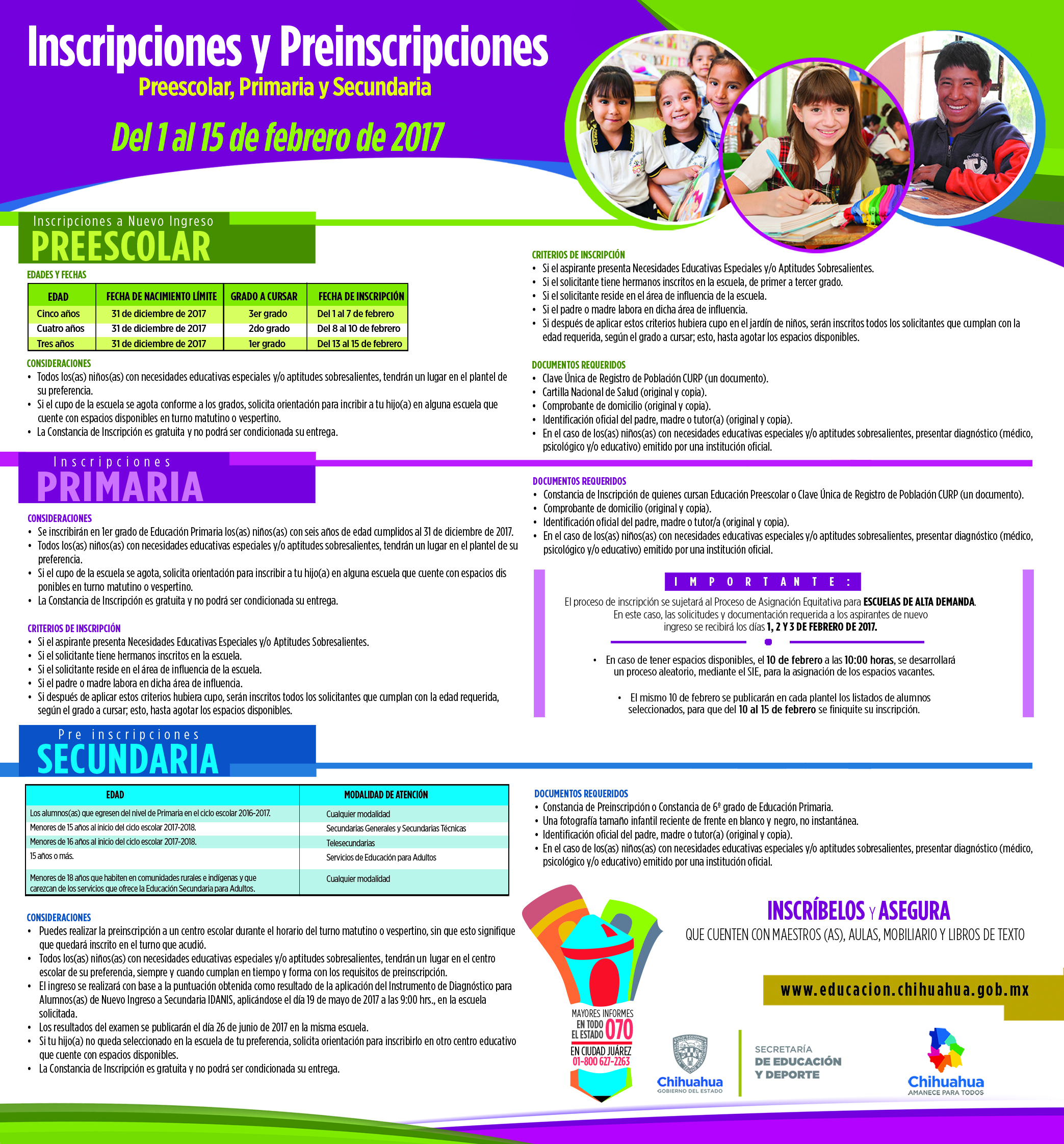 Preescolar, Primaria y Secundaria, del 1 al 15 de febrero Más información:Secretaría de Educación y Deporte Adjuntos de la nota proeso_inscripciones2017.jpg