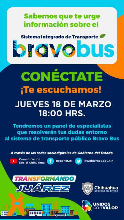 Con la finalidad de saber y dar respuesta a la ciudadanía sobre dudas o inquietudes que puedan existir en torno al Sistema Integrado de Transporte Bravobus, Gobierno del Estado realizará un panel con especialistas en el tema.