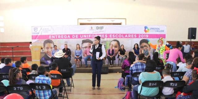 Con el objetivo de garantizar el derecho al acceso a la educación de niñas, niños y adolescentes en las zonas marginadas del estado, la presidenta del Desarrollo Integral de la Familia (DIF) Estatal, Cinthia Aideé Chavira Gamboa, en conjunto con la Secretaría de Educación y Deporte (SEyD), realizó la entrega de 8 mil 049 uniformes y 13 mil 306 paquetes de útiles escolares a estudiantes del municipio de Guachochi.