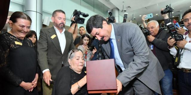 En sesión solemne del Congreso del Estado, entrega Gobernador Javier Corral Jurado la presea a Helena Alicia Herrera de Servín, madre del chihuahuense excepcional, escritor, políglota y reconocido defensor de las lenguas indígenas