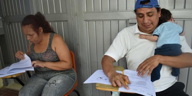 Con su bebé en brazos, una pareja de migrantes procedente de la Ciudad de México y Tlaxcala acudió a las instalaciones del Instituto Chihuahuense de Educación para los Adultos (Ichea) en Ciudad Juárez, para presentar los exámenes que les acreditaran los estudios de primaria y secundaria.